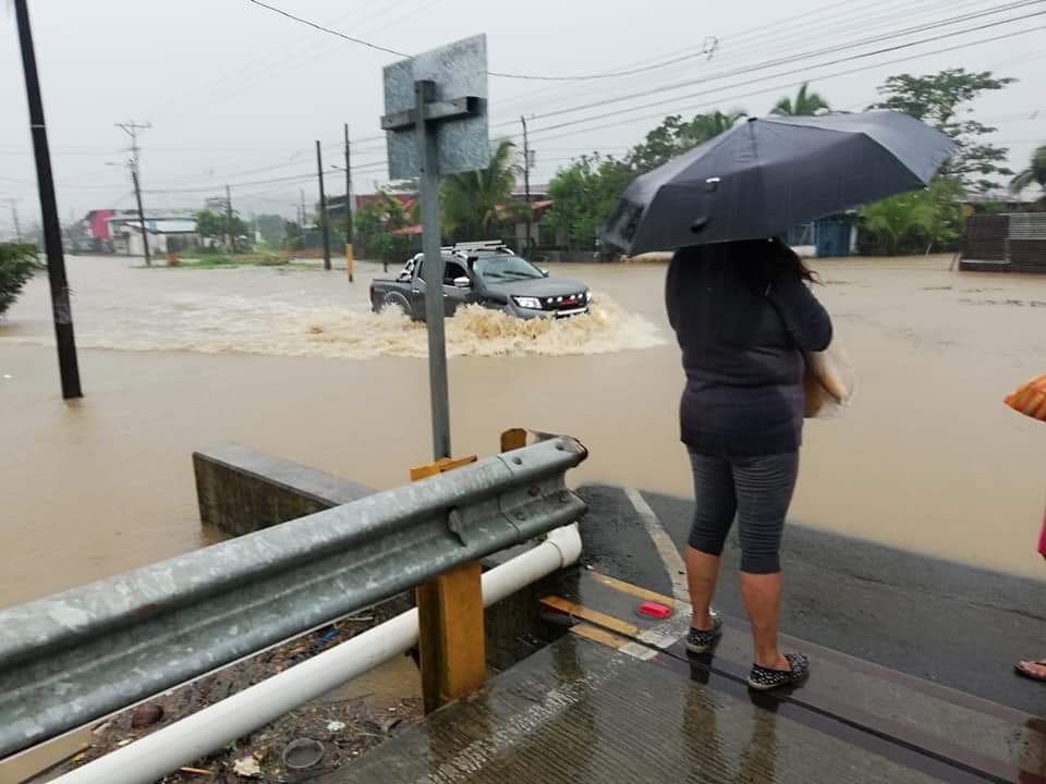 La influencia de un empuje frío y el tránsito de la onda tropical número 53 ha provocado fuertes aguaceros que inundaron las calles del centro de Limón y barrios aledaños.